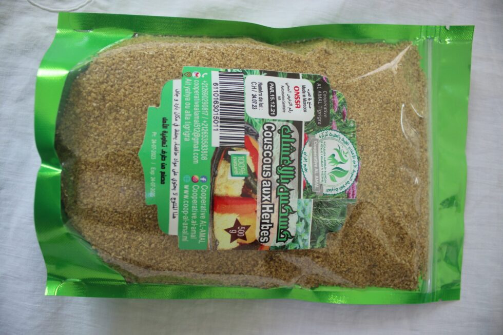 Le couscous aux herbes aromatisé est une délicieuse variante de ce plat traditionnellement préparé à base de semoule de blé. Cette version particulière est enrichie d’un mélange savoureux d’herbes comprenant du thym, de l’origan, de la mélisse et de la sauge, ce qui lui confère un parfum délicat et une saveur riche. La farine de blé utilisée pour préparer le couscous garantit une texture légère et moelleuse, tandis que les herbes ajoutent une dimension aromatique et gustative unique. Ce plat est une combinaison parfaite de simplicité et de raffinement, idéal pour accompagner une variété de plats principaux ou à savourer seul en tant que plat principal végétarien.