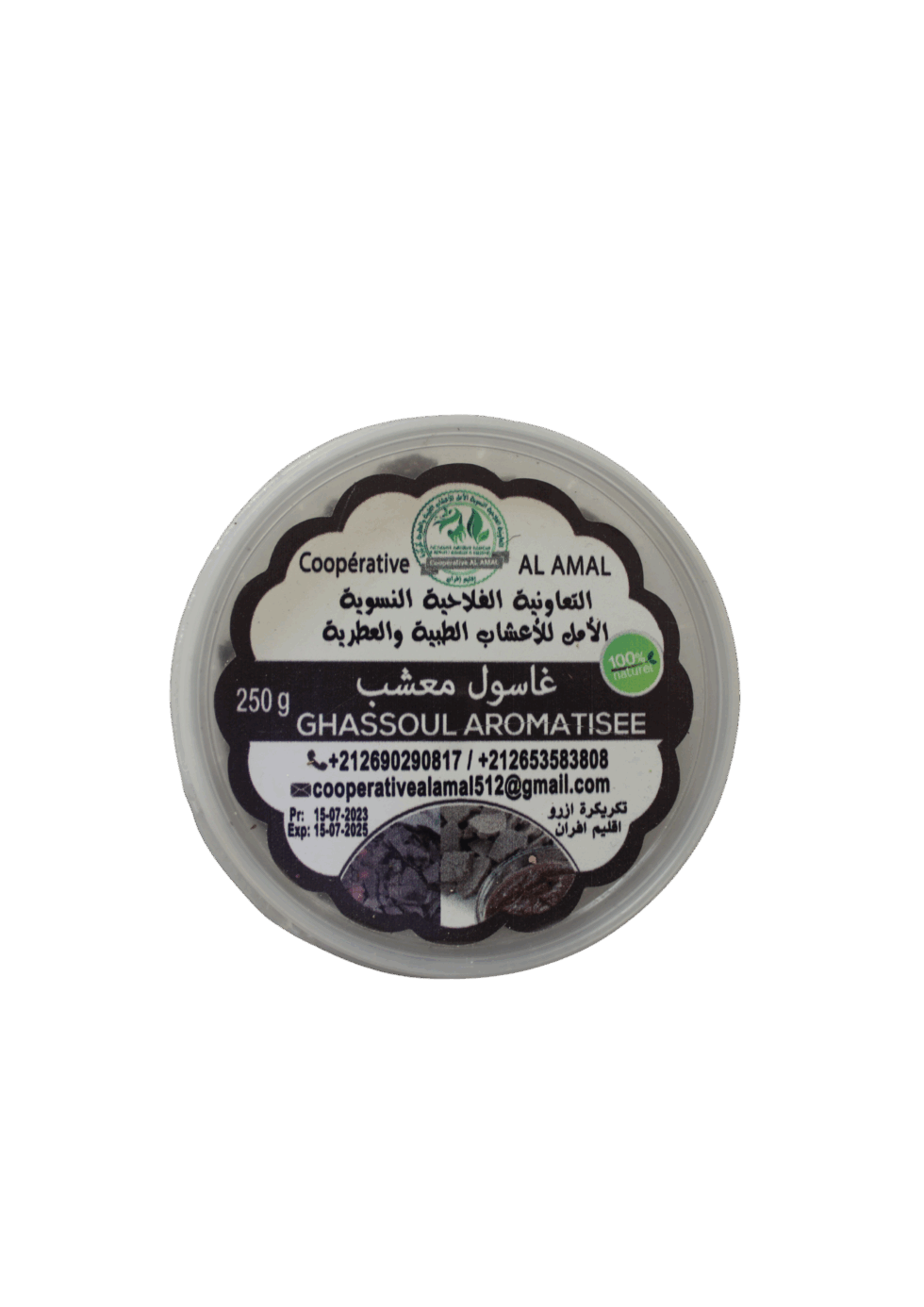 Découvrez notre Ghassoul aromatisé, un produit cosmétique naturellement enrichi d’arômes exquis pour une expérience de soin sensorielle et revitalisante. Connu depuis des siècles pour ses propriétés nettoyantes et purifiantes, le Ghassoul est une argile minérale riche en minéraux bénéfiques pour la peau. Cette version aromatisée ajoute une dimension luxueuse à votre rituel de soin, enveloppant votre peau dans des parfums envoûtants tout en la débarrassant des impuretés et en régulant l’excès de sébum. Offrez-vous un moment de détente et de rajeunissement avec notre Ghassoul aromatisé, et laissez-vous transporter dans un univers de bien-être et de beauté.